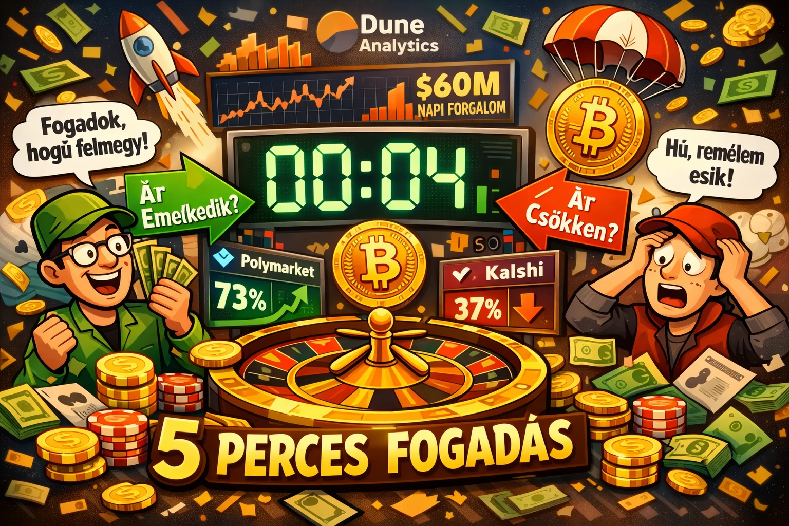 Az elmúlt hónapokban robbanásszerű növekedés figyelhető meg az olyan platformokon, mint a Polymarket vagy a Kalshi, ahol a felhasználók extrém rövid időtávú fogadásokat kötnek a Bitcoin árfolyamára.