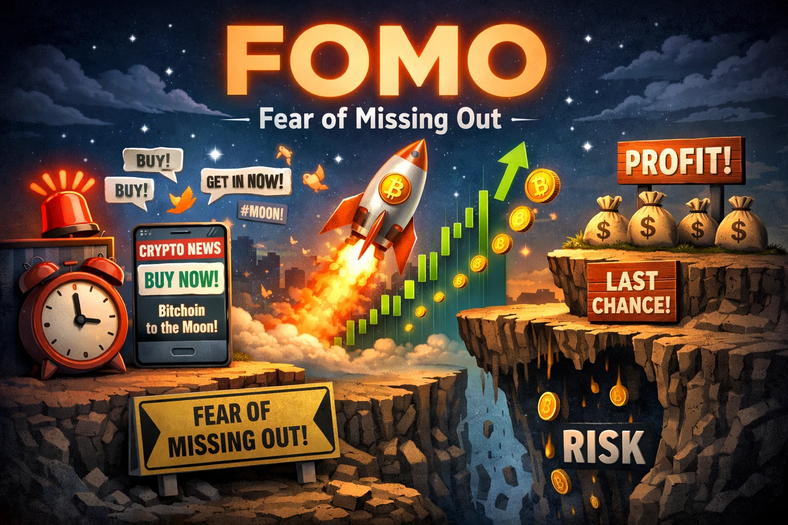 FOMO fogalma, Fear of Missing Out, kriptovaluta pszichológia, kripto befektetés, viselkedési pénzügyek, kripto kockázatkezelés, altcoin hype, bull run pszichológia, kripto piac elemzés