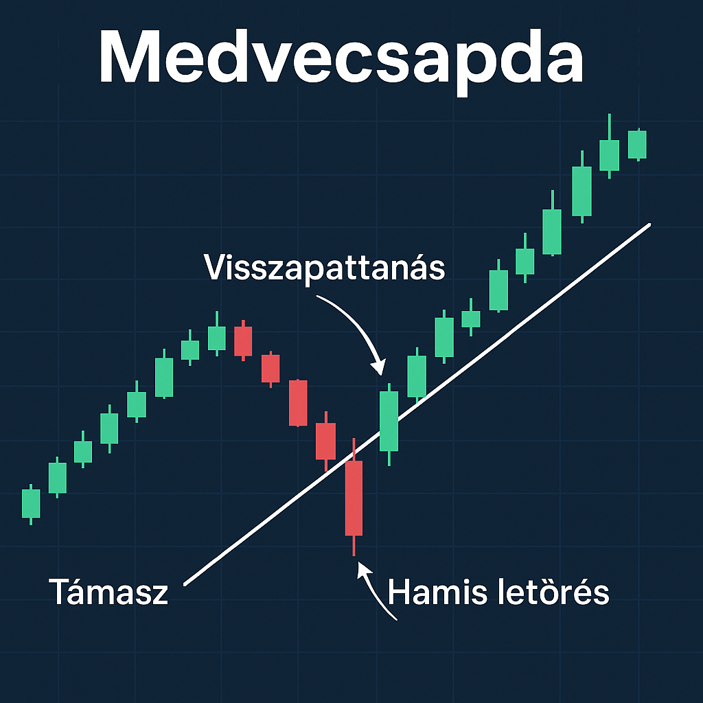 Medvecsapda jelentése, bear trap kriptopiacon, árzuhanás átverés, kriptovaluta árfolyam manipuláció, hamis letörés, piaci csapda, short pozíció csapda, kripto kereskedési hibák