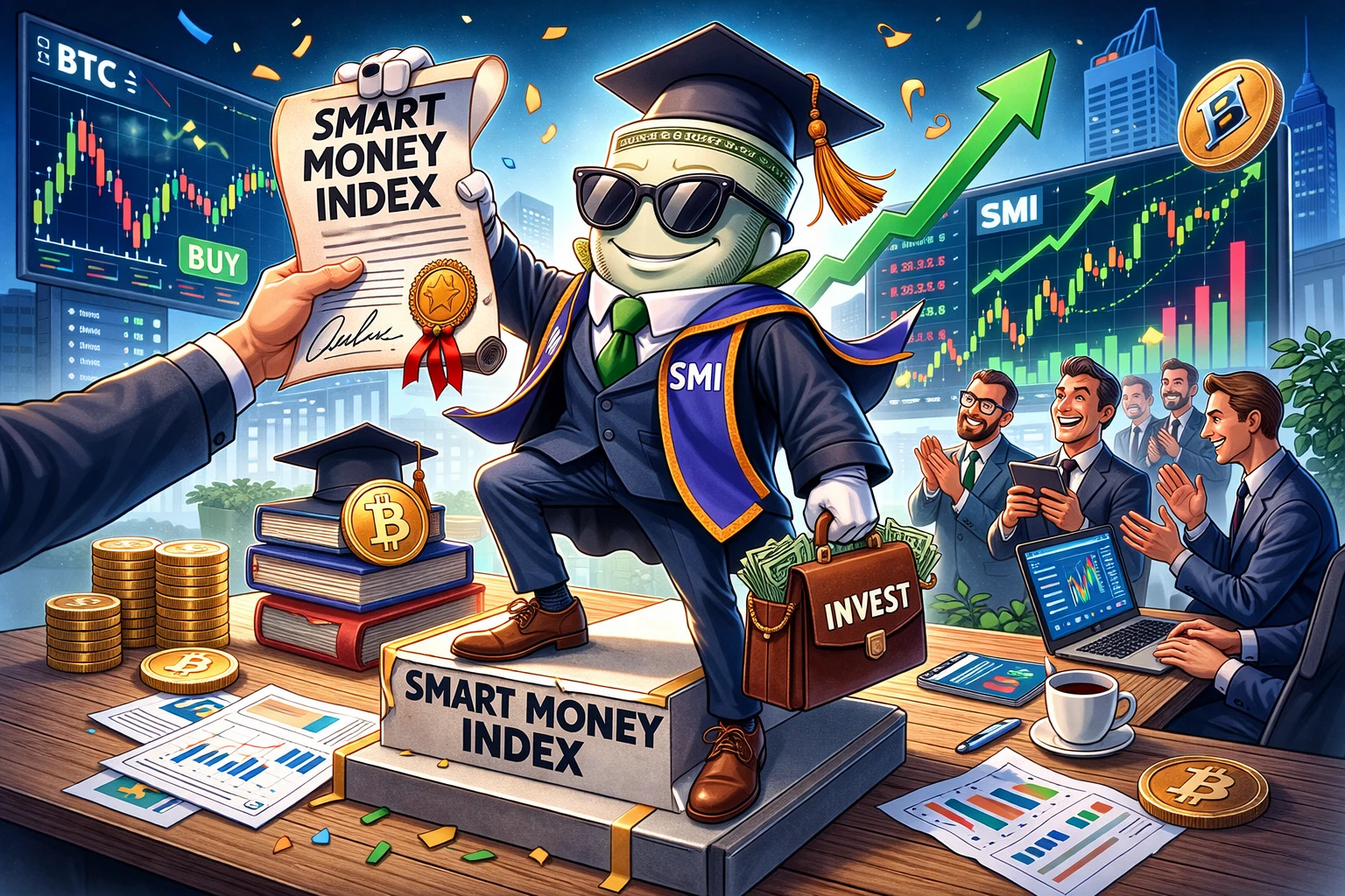 Smart Money Index, SMI fogalma, okos pénz, kriptovaluta indikátor, technikai elemzés, intézményi befektetők, Bitcoin elemzés, piaci ciklusok, smart money stratégia, kripto piaci elemzés