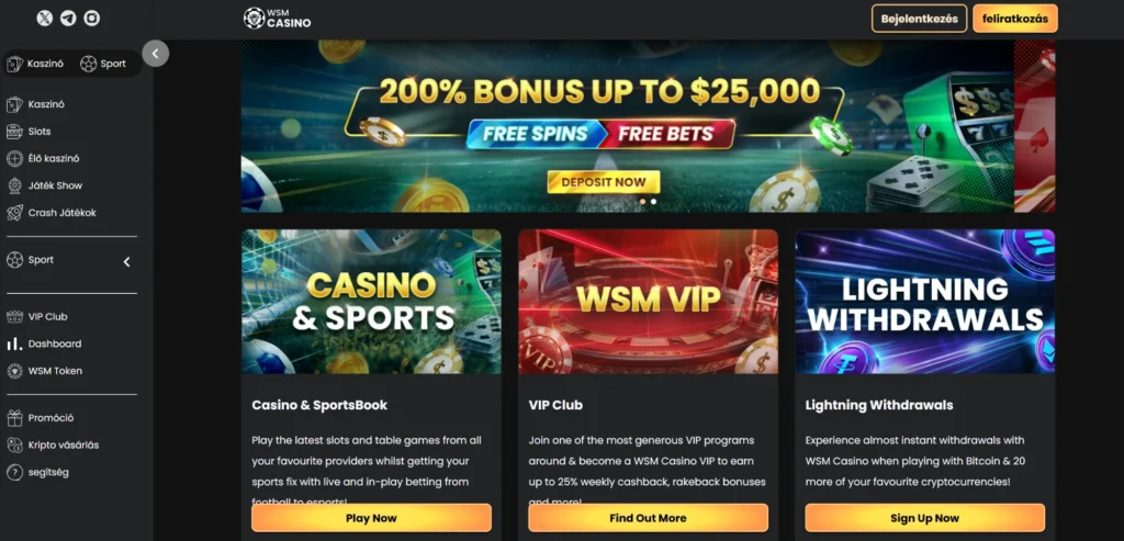 Az előző két kaszinó után talán nem lesz meglepő, hogy a WSM is követi a piac trendjeit, és az oldalán a fekete, a szürke és az arany színek dominálnak. A hasonlóságok listája azonban itt nem merül ki, ugyanis a WSM oldalán is rendkívül könnyű az eligazodás, és határozottan a felhasználóbarát kaszinók táborába sorolható.